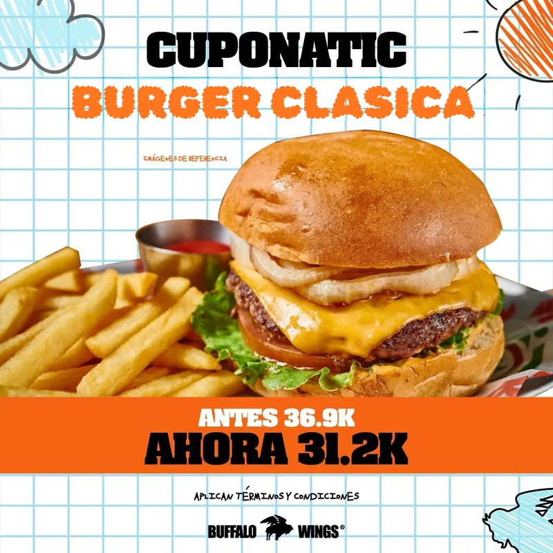 ¿QUÉ?: 1 Burger Classic + 1 orden de papas + 1 Coca-Cola personal por $31.200.